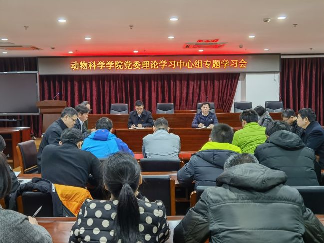 1月11日,动物科学学院党委在学院会议室召开理论学习中心组专题学习研讨会。学院党委委员、领导班子成员、教工党支部书记、科级干部、辅导员等参加了学习会。会议由学院党委书记黄毅军主持。