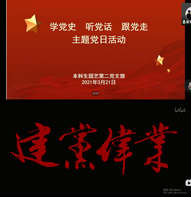 3月21日晚,园艺学院本科生园艺第二党支部依托腾讯会议平台开展“学党史,听党话,跟党走”线上主题党日,播放红***《建党伟业》,支部全体党员、入党积极分子共计50余人在线集体观看。